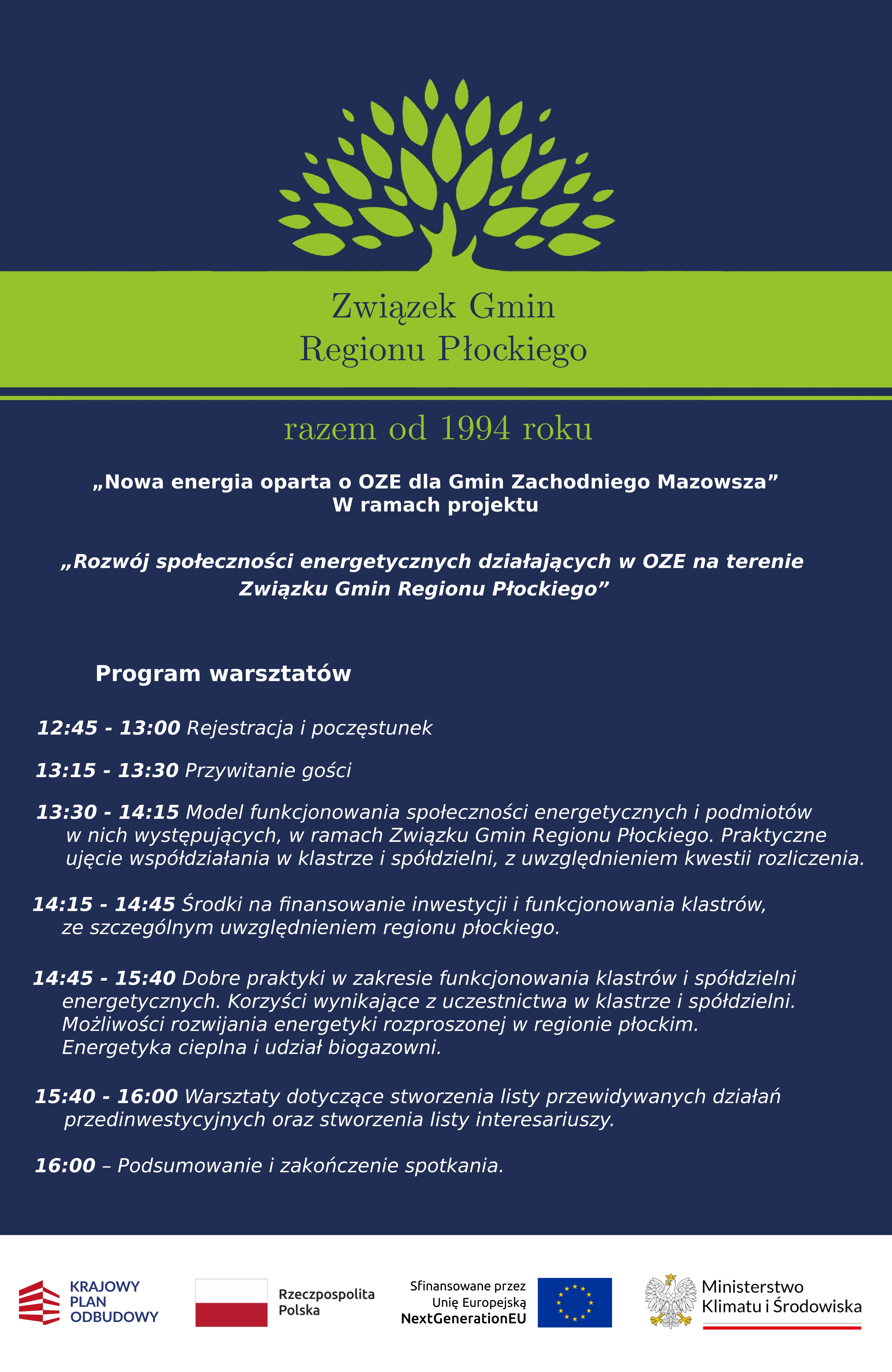W związku z realizacją przedsięwzięcia pn. „Rozwój społeczności energetycznych działających w OZE na terenie Związku Gmin Regionu Płockiego” rozpoczynają się spotkania inauguracyjno – szkoleniowe.
