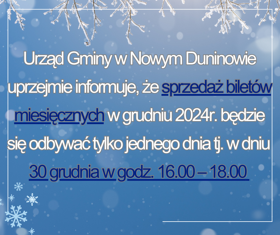 Sprzedaż biletów miesięcznych w grudniu 2024 roku.