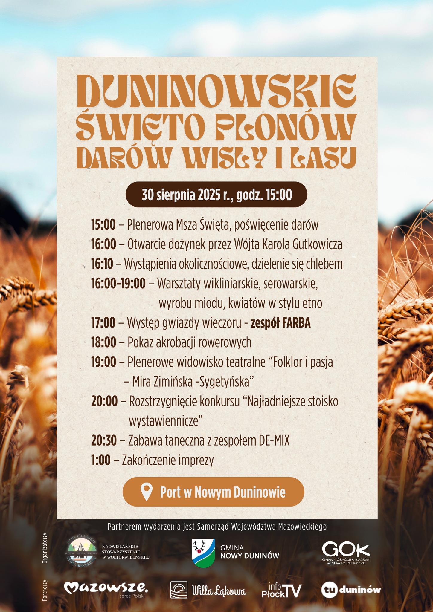 Zaproszenie na Duninowskie Święto Plonów, Darów Wisły i Lasu